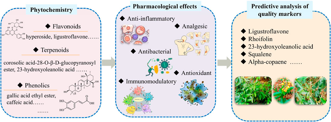 Academician Liu Changxiao proposed the Quality Markers (Q-markers) theory, which was developed by integrating traditional principles of medicinal properties, preparation methods for Chinese patent medicines, and clinical applications of botanical drugs. The Q-markers theory emphasizes the identification of multi-metabolite biomarkers that collectively reflect the quality, efficacy, and consistency of TCM materials and formulations. The theory is centered on the “The effectiveness of TCMs-the material basis for the quality control of the signature metabolites”. Furthermore, it offers research insights aimed at enhancing the efficacy and safety of TCM, as well as improving the quality standards of its products for clinical application (Liu et al., 2016; Zhang T. et al., 2025). To date, limited systematic reviews have been published on Staphylea arguta, with most focusing narrowly on specific metabolites or activities. No comprehensive review integrating phytochemical, pharmacological, and quality marker perspectives is available. This review aims to fill this gap by providing a holistic overview and proposing Q-markers to support quality standardization and further research.