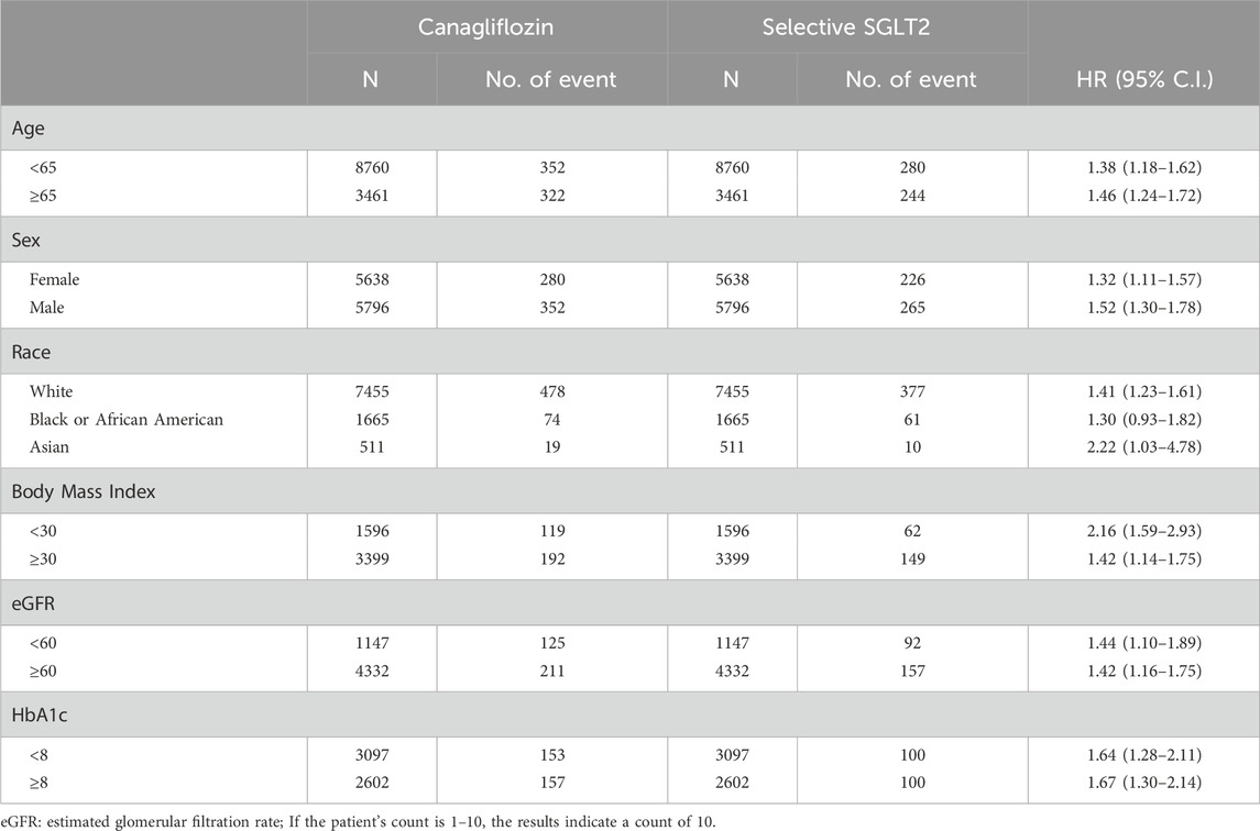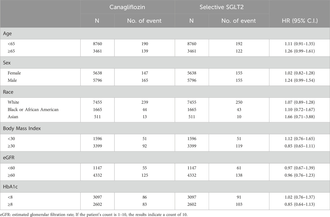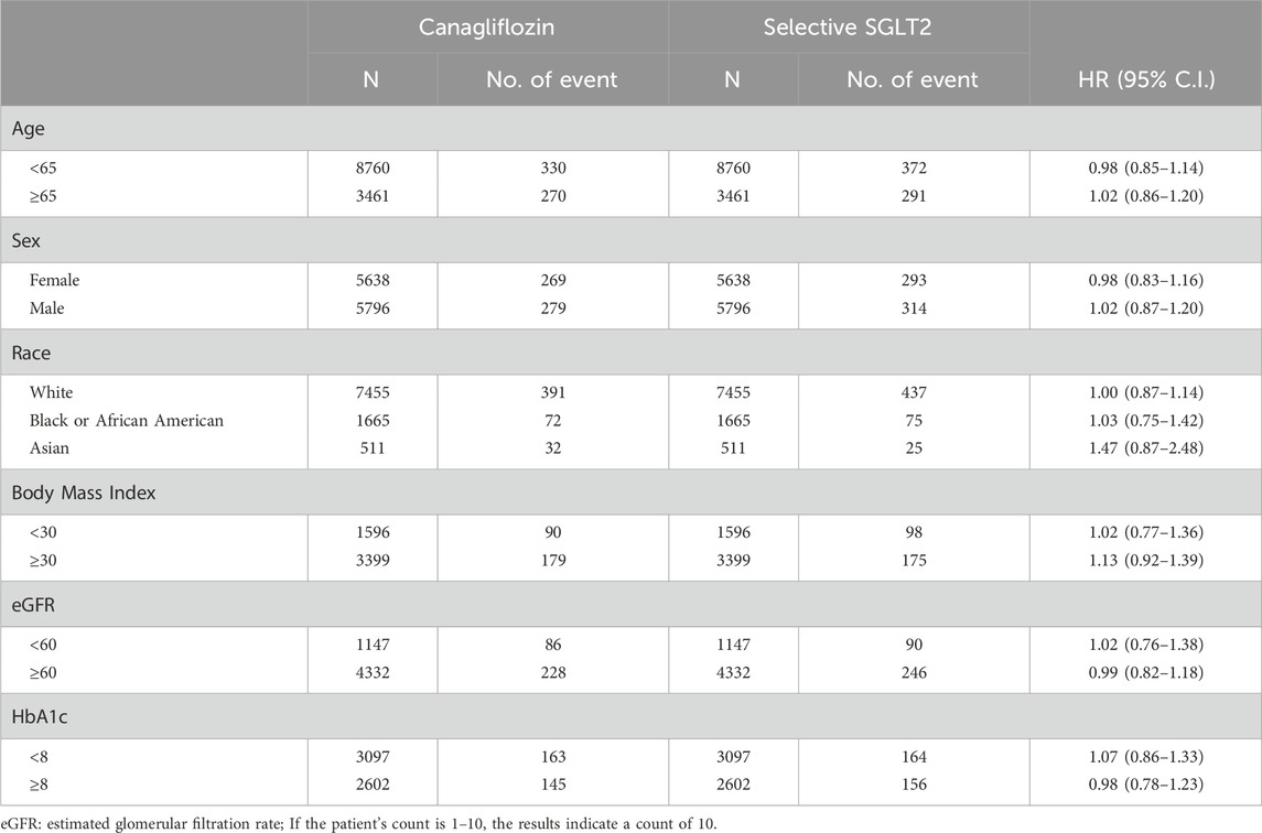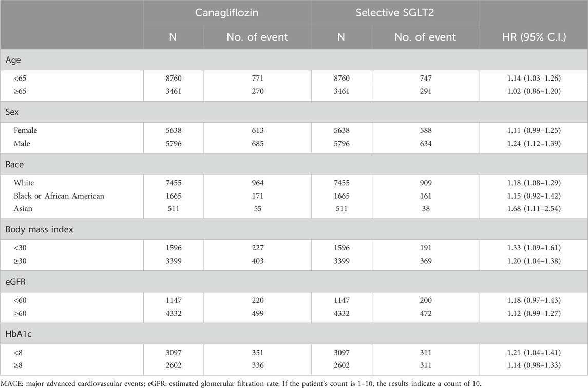 Table 3. Stratification analysis of risk of MACE Composite Outcome exposed to canagliflozin compared to Selective SGLT2.