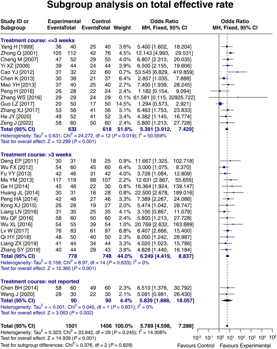 3.8 Subgroup analysis on the total effective rate based on the treatment course