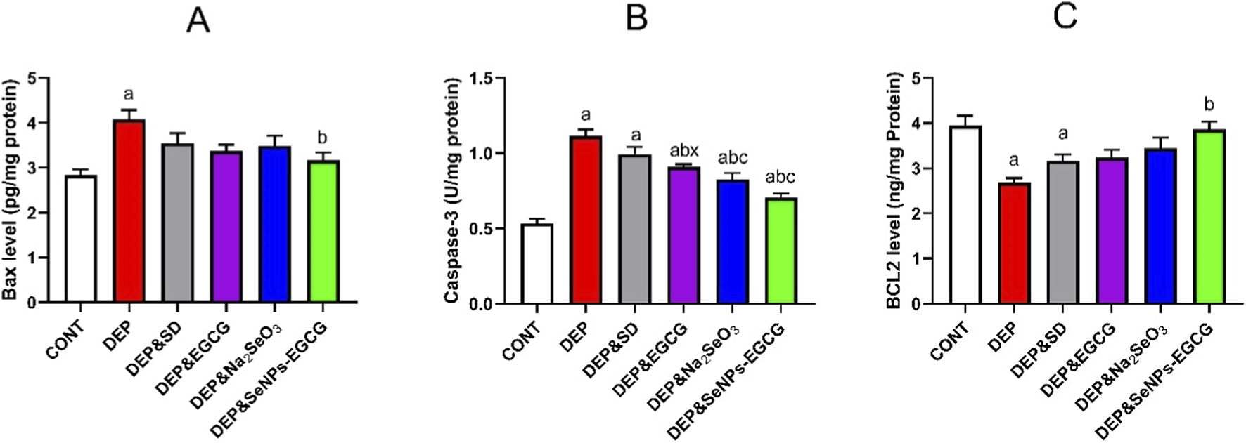 ELISA kits. Bax (Cat. No. MBS722913) and Caspase-3 (Cat. No. MBS701377) were measured using kits from MyBioSource (San Diego, CA, USA), whereas Bcl-2 was determined using a Cloud-Clone ELISA kit (Cat. No. SEB691Ra; Cloud-Clone Corp, Houston, TX, USA) All assays were performed according to the manufacturer’s instructions.