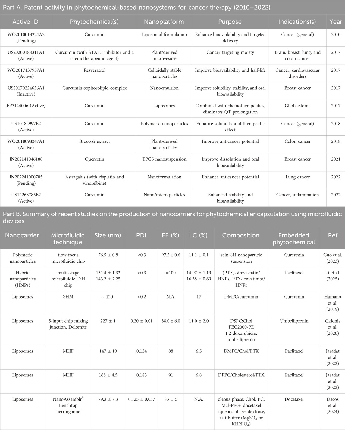 Table 1. Advances in phytochemical-based nanosystems for cancer therapy: patent trends and microfluidic production approaches.