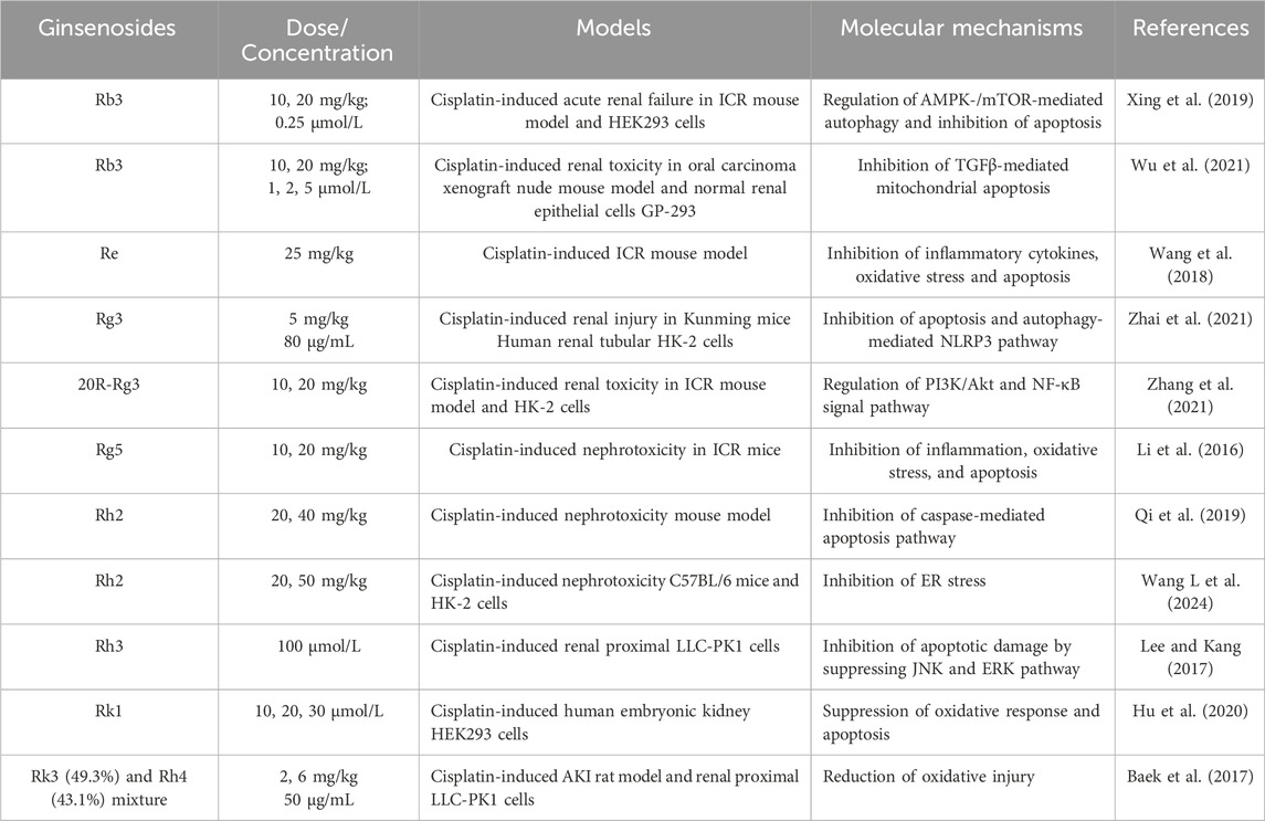 Luo, X., Xie, D., Chen, Z., and Ji, Q. (2023). Protective effects of ginsenosides in cisplatin-induced kidney injury: a systematic review, meta-analysis. Indian J. Pharmacol. 55 (4), 243–250. doi:10.4103/ijp.ijp_251_23