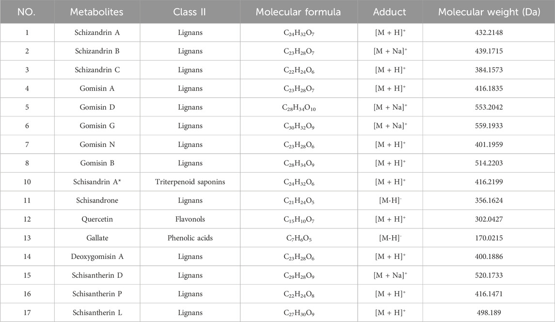 Table 2. 17 metabolites identified and characterized in Schisandra chinensis fruits by UPLC-Q-TOF/MS.