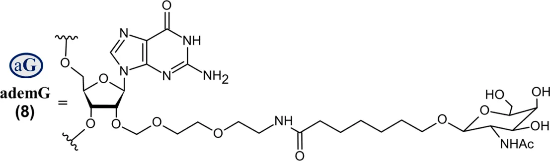 | Imetelstat (Rytelo™) IV | 13-mer 3′-amino-3′-deoxy ASO; PS (−) linkages; lyophilized solid reconstituted in saline for IV infusion; MW = 4.896 kDa (sodium salt) RP – 5′-T–A–G–G–G–T–T–A–G–A–C–A–A-NH2-3′ ![]() |