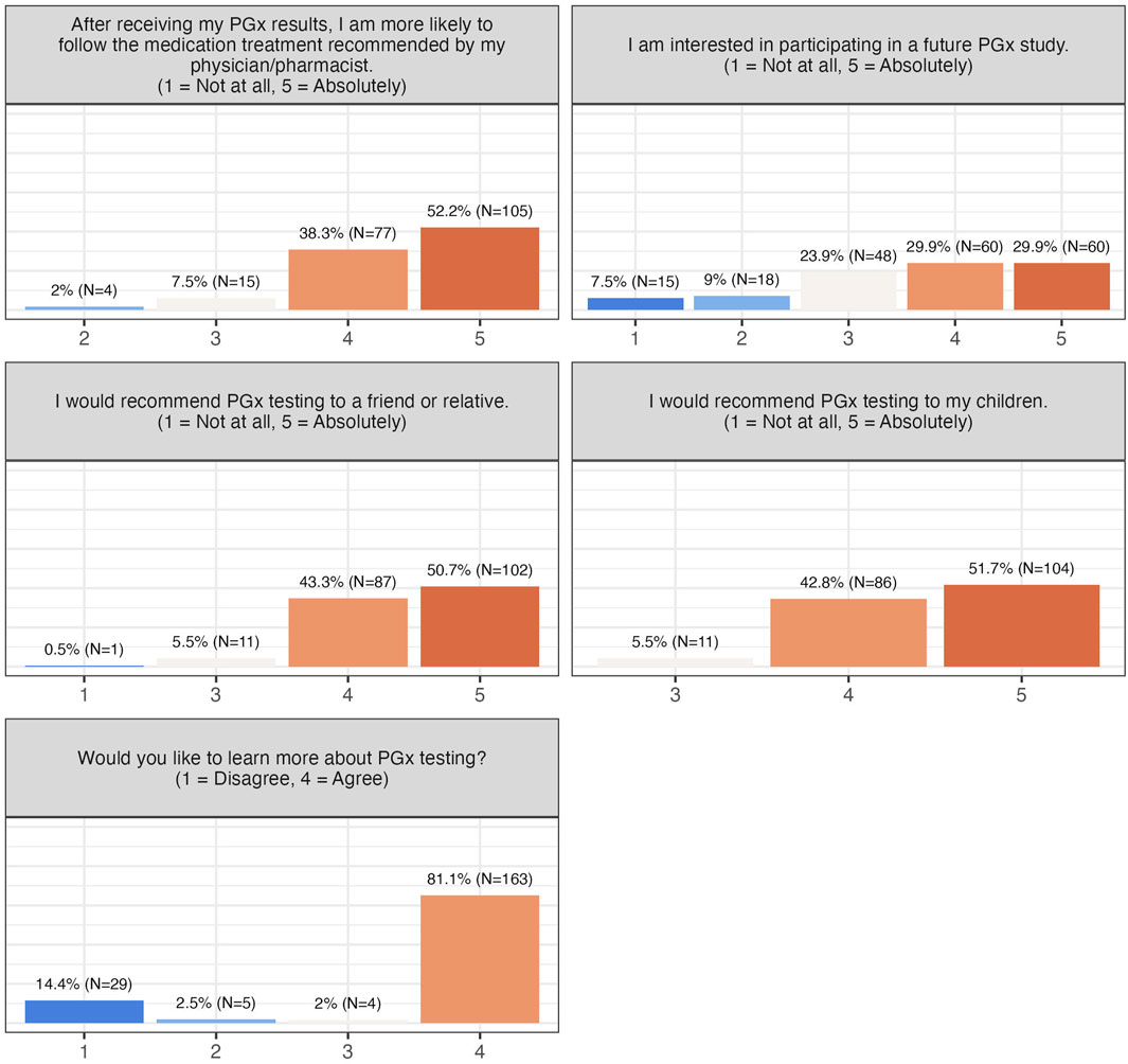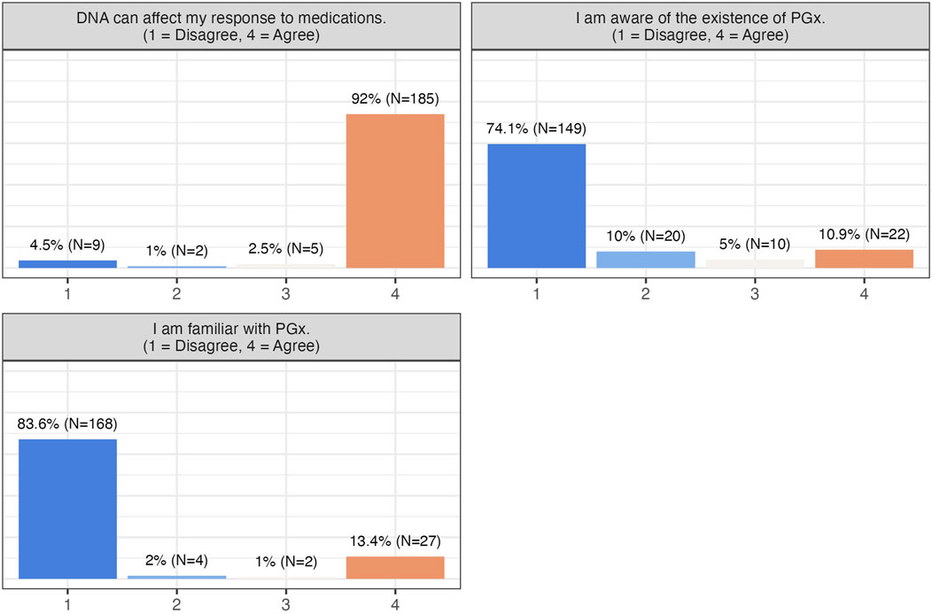 Discussion: Collectively, our data highlights the need for enhanced patient education and awareness about PGx testing and reflects an overall positive patient attitude towards genome-guided therapeutics.