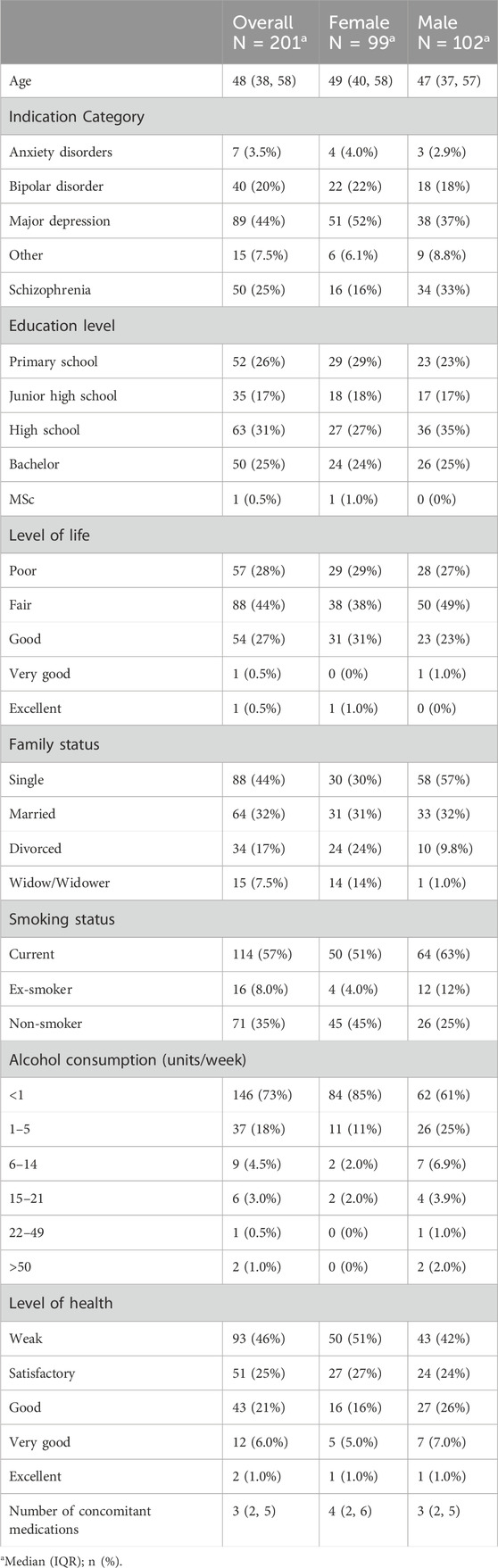 Our sample population exhibited balance in terms of gender and age distribution, as shown in Table 1. In particular, the average participants’ age was 48 years old, and the sample consisted of 102 males and 99 female participants. 31% of the respondents have graduated from high school, 26% had completed only primary school education, and 25% were B.Sc. degree holders. Participants’ quality of life was characterized as fair by 43% followed by a poor level of life in approximately 25% of cases. This sample is representative of the wider cohort of participants in the PGx arm in the PREPARE trial. Upon comparing the baseline characteristics of the questionnaire subgroup (n = 201) against the entire PGx arm (n = 646) across demographic, clinical, lifestyle, and pharmacogenetic variables, we identified no statistically significant differences between the two groups (Supplementary Tables S1-S2).