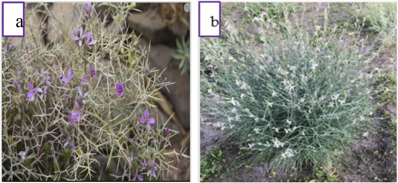 (a) Zilla spinosa (L): Prantl (Z.s) (b) Farsetia aegyptia Turra (F.a).