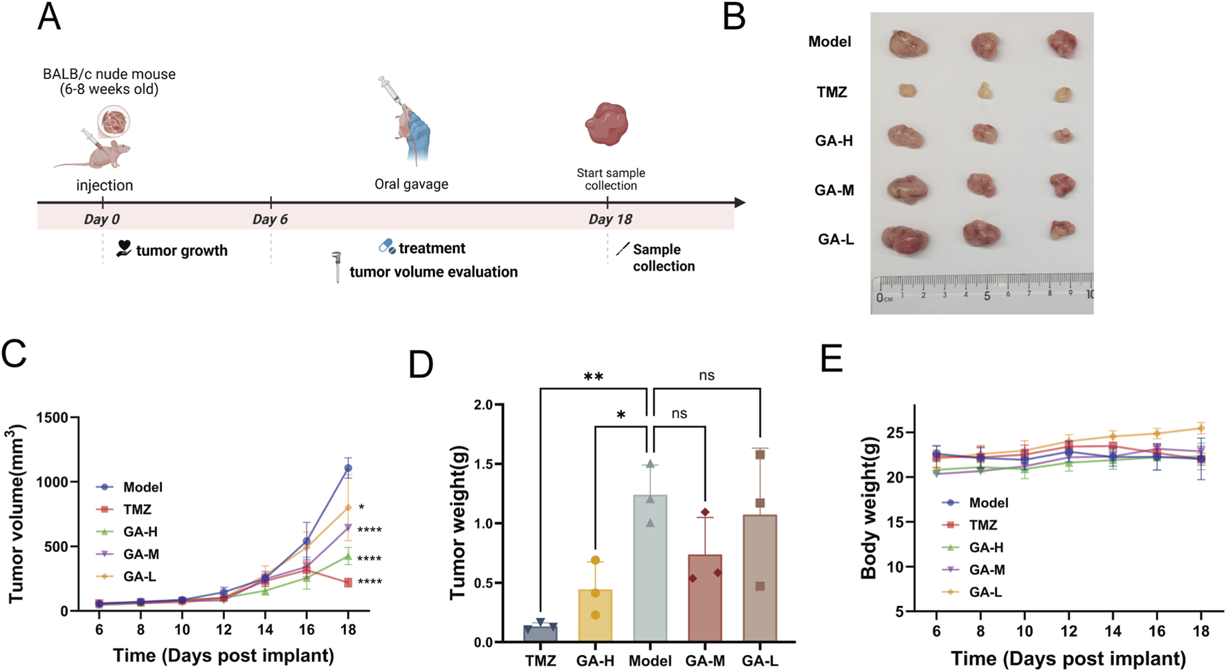 3.3 GA inhibited tumor growth in subcutaneous GBM model