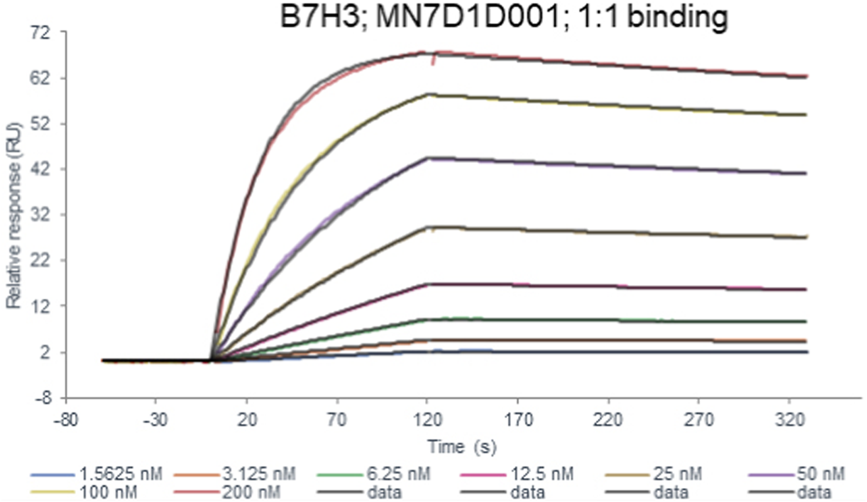 B7H3(36H7) antibody binding kinetics to B7H3 protein in Biacore kinetic assays.