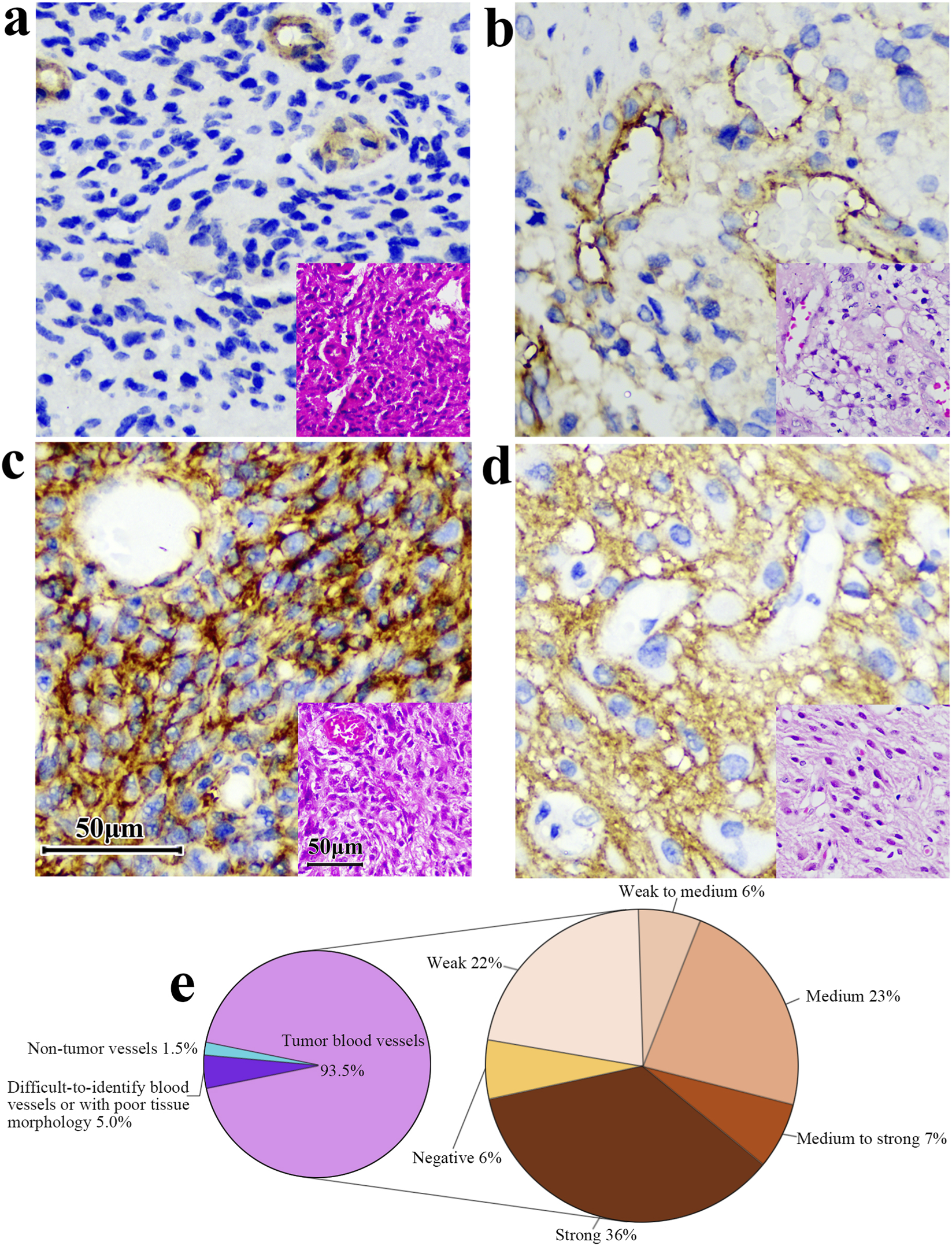 The B7-H3 protein was used as a blocker for the B7-H3 (36H7) antibody. For immunohistochemistry (IHC) assay, the B7-H3 protein was added to the B7-H3 (36H7) antibody solution to achieve final concentrations of 0 μg/mL, 0.05 μg/mL, 0.1 μg/mL, and 0.5 μg/mL, respectively. Subsequently, the protein-antibody mixture was incubated on antigen-retrieved tissue slides for 40 min at room temperature. After washing, the slides were incubated with polymer (secondary antibody) for 2 min at room temperature, followed by incubation with 3, 3′-diaminobenzidine (DAB) for 8 min and hematoxylin for 8 min at room temperature. Finally, the slides were dehydrated and mounted with neutral resin.