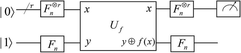By applying the gate to and following the formula by phase kick-back, we obtain the output stateFinally, obtain the which is the state after inverse Fourier transform of the first N qudits of . By measuring the first N quantum state of we can obtain the natural number string we want that is offset up to a constantusing a single query of the oracle function.