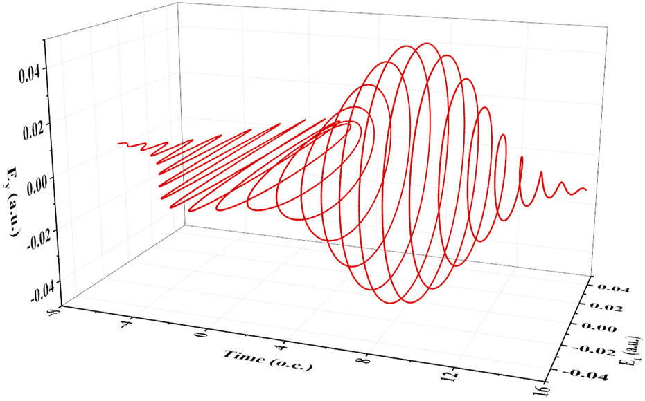 Figure 1 shows the schematic diagram of the composite laser electric field with the time delay ΔT = 8 o.c. The superimposed part makes the polarization of the laser electric field transition from linear polarization to circular polarization. With different delay time, the time-dependent ellipticity has different variation tendency, which provides a controlling mechanism of electron dynamics.