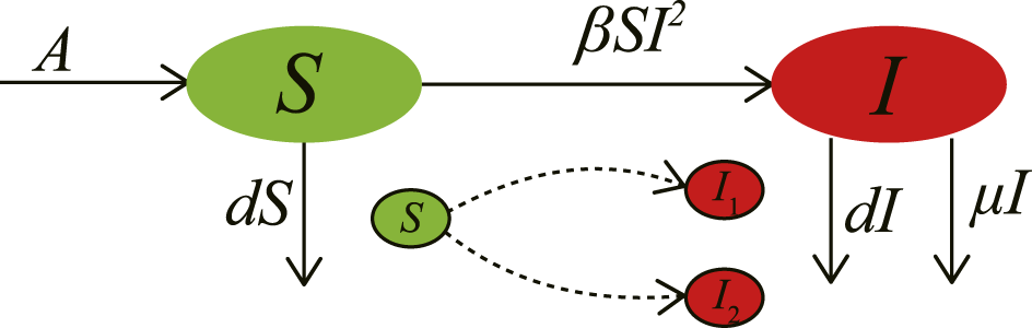 FIGURE 4. Schematic diagram of infectious diseases transmission process. The model satisfies the following conditions: 1) the epidemic cannot be cured after being infected; 2) the susceptible is exposed to the disease repeatedly, leading to a non-linear transmission rate.
