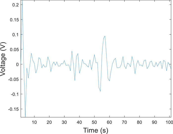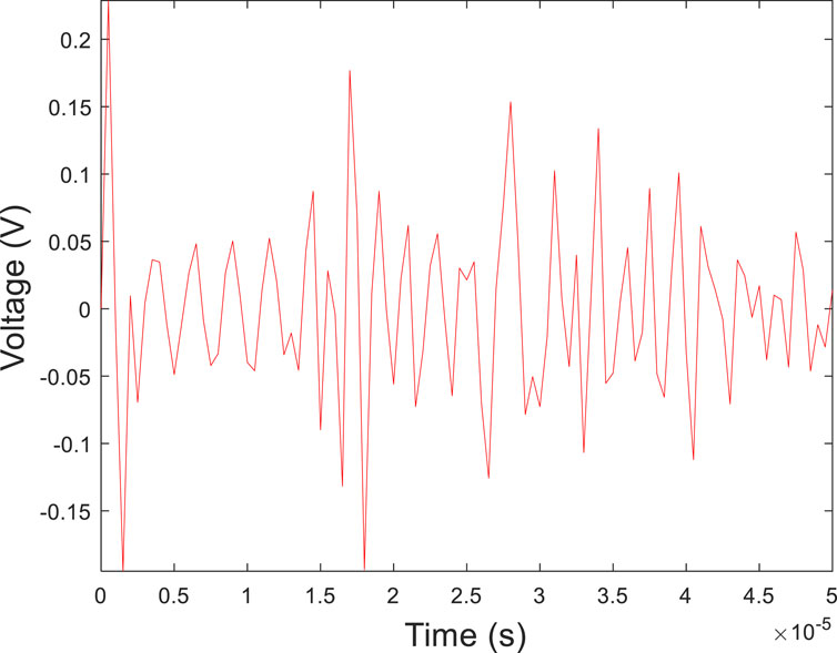 Figures 5–8 are internal echoes detected by the cable insulation defect detection test device under different conditions. From the figure, the echo signal characteristics of the cable under different conditions are not particularly obvious, with the same voltage fluctuation amplitude.