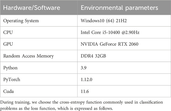 This article conducts the verification of the CNN-Transformer classification model based on ultrasound detection data. The MCF-TST model proposed in this article is built on the PyTorch deep learning framework and Python. The hardware and software parameters of the training environment are shown in Table 1. The preset CNN node number (32, 64, 128), Dropout value (0.1, 0.2, 0.3, 0.4, 0.5), Encoder layer number (4, 5, 6), and time step (4, 6, 8, 10). There are 600 groups of each signal, and they are divided into training set, validation set and test set according to 4:1:1. The dataset for the CNN-transformer model was assembled with a blend of simulated and real-world data to ensure a broad representation of defect scenarios. It includes a significant number of samples necessary for effective model training and validation, with a focus on high data quality and precise labeling. The exact dataset size is tailored to the task’s demands, but it is sufficiently large to enable the model to generalize well across various conditions. The cross-entropy function commonly used in classification problems is chosen as the loss function for training, represented by Eq. 8.