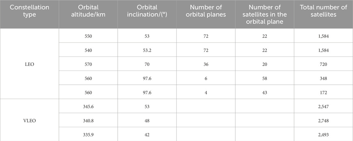 The constellation design of Starlink has gone through two phases. As early as April 2020, SpaceX adjusted the orbital altitudes of all satellites in the LEO constellation from 1,150 km to 550 km to a range of 540–570 km in the first phase configuration. The modified configuration of the first phase of the Starlink constellation is shown in Table 3; [124, 125].