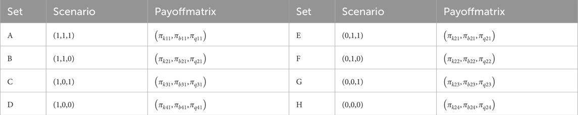 The payoff functions for MNEs, local enterprises, and the blockchain platform under eight different scenarios are as follows (Equations 3.1–3.8):