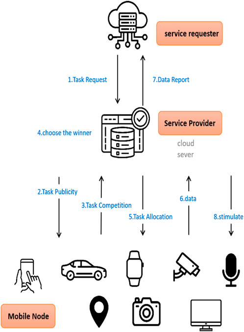 1.It is assumed that the service provider is a semi-trusted third party. Although it will strictly comply with the system rules to carry out task announcement and task allocation, the service provider will also pry into privacy information, such as node locations, task locations, task contents, etc. Therefore, the service provider is a potential privacy attacker.