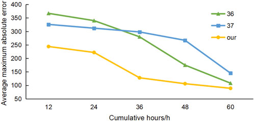 Figure 5 presents the maximum absolute error values of the algorithms at each position update moment. It can be observed that the maximum absolute error value of the proposed method in this study is lower than that of the algorithms in [36, 37] in the overall trend after perturbing the client vehicle location. In addition, the fluctuation of the maximum absolute error determined in this study is small. At the same time, the average maximum absolute error of this paper’s method is less affected by the cumulative duration. The method proposed in this paper can better maintain the statistical accuracy of the perturbed position. Comparing with the algorithms in [36, 37], as the cumulative length decreases, their average maximum absolute errors keep increasing, and the statistical accuracy of the perturbed position decreases sharply. Therefore, the deviation of the perturbation results of the method proposed in this paper is smaller than that of the algorithms in [36, 37]. The statistical accuracy of the location after perturbation is higher, and the data availability is higher.