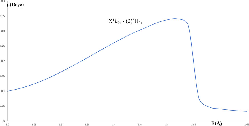 Figure 4. Transition dipole moment between the two electronic states X1Σ0+ - (2)3Π0+ of the molecule HBr.