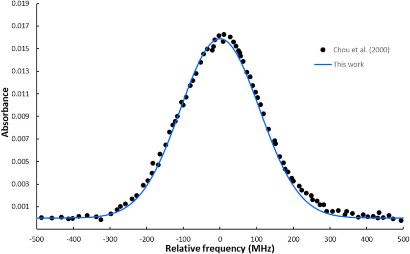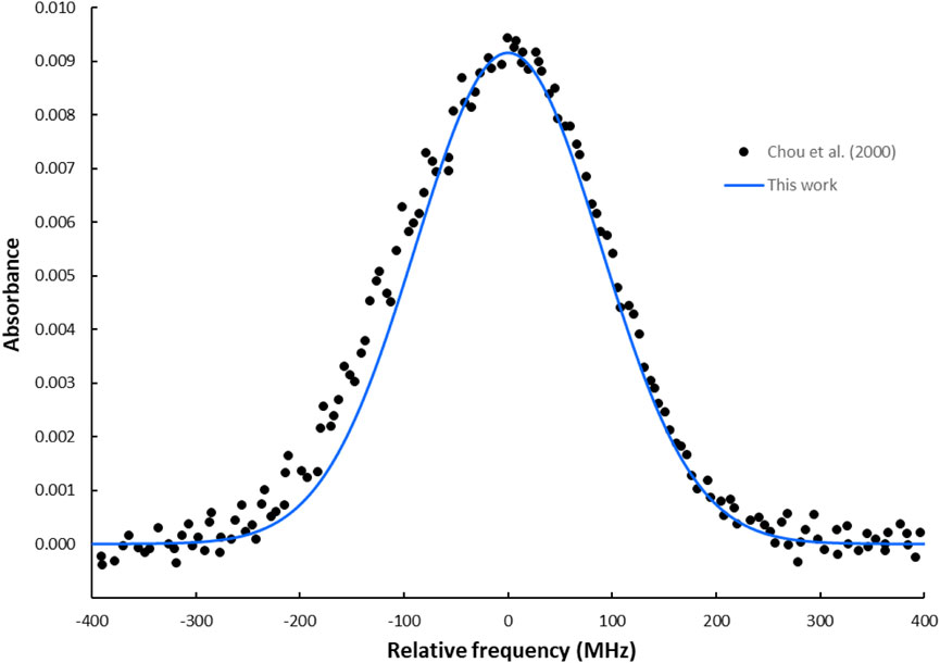 Figure 6. The simulated absorption spectrum of the P(2) transition in the first-overtone band of the HBr molecule using the Gaussian line profile at T = 294 K and a pressure of 100 mTorr.