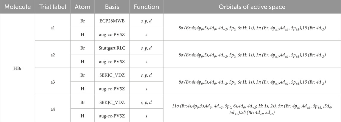Table 1. Orbitals of active space of the basis sets ECP28MWB, Stuttgart RLC, and SBKJC_VDZ of the Br atom, and aug-cc-PV5Z for the Hydrogen atom.