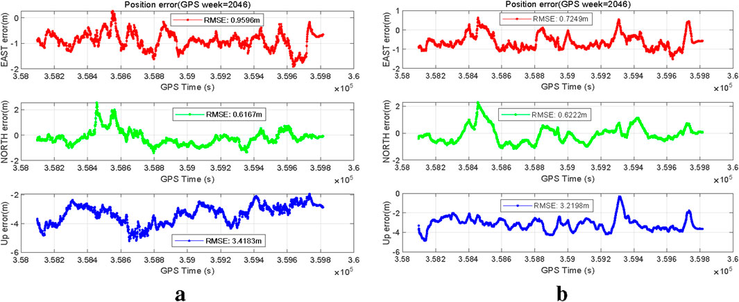 This section is dedicated to evaluating and contrasting the performance and computational burden of LC and TC GNSS/INS integration strategies. To facilitate this comparison, our team developed an outdoor pre-experiment platform, which enabled us to assess and validate both approaches. Some initial experimental results, accompanied by a brief analysis, have already been presented. In the subsequent content, a deeper investigation of the pre-experiment is conducted to identify the potential causes of HI GNSS/INS anomalies.