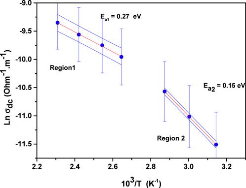 The variation of DC conductivity with temperature can be interpreted using the Arrhenius relation (32):