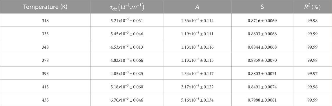 Table 1. Fitting parameters from Jonscher’s Power law with 95% confidence interval level.