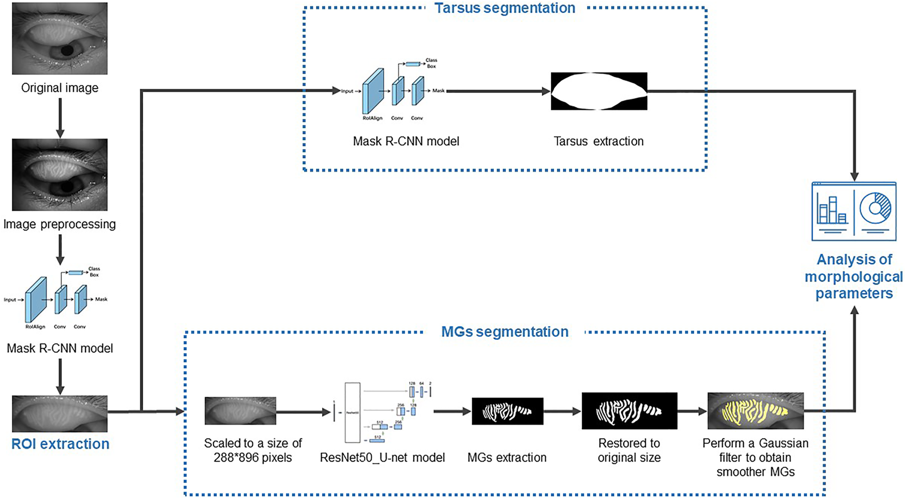 Meibography images were captured with a K5M (Markoulli et al., 2017). Then, the MGs from these images were extracted using a novel MG extraction method based on CNN with a residual neural network, which was introduced in our previous study (Zhang et al., 2022).