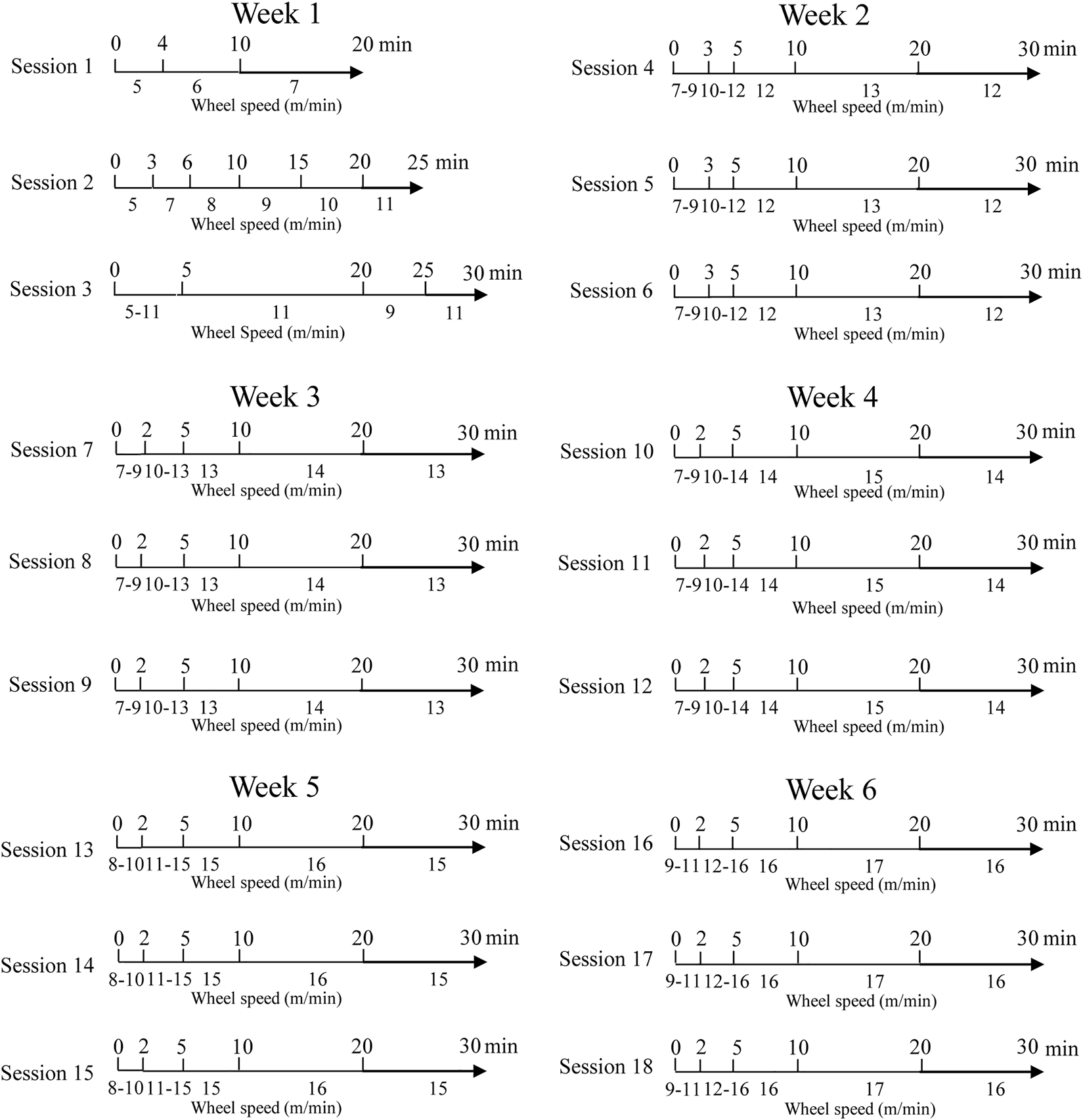 The rats exercised between 9:00 a.m. and 3:00 p.m. to reduce circadian influences.