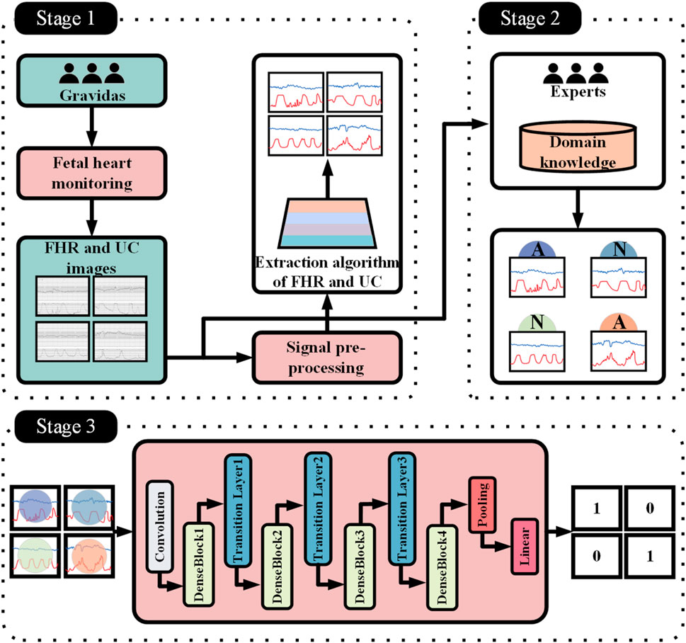 Keywords: fetal heart rate monitoring, artificial intelligence, bimodal analysis, DenseNet121-SK, AI-assisted decision-making