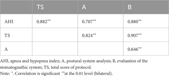 Sleep and wakefulness are regulated by both homeostatic and circadian mechanisms. During sleep, respiratory changes include decreased respiratory rate, reduced alveolar ventilation, lower tidal volume, changes in blood gas concentrations, and reduced tone and reflex activity in respiratory and UA muscles. These changes predispose the airway to collapse, leading to partial or complete airflow interruption (Richter et al., 1997). OSA is also associated with metabolic dysregulation, impaired glucose control, and increased risk of diabetes (Murayama et al., 2011). Sleep disturbances affect neuroendocrine function, contributing to elevated leptin levels (associated with increased appetite), heightened pro-inflammatory cytokines (e.g., TNF-α and IL-1β), and reduced insulin sensitivity, resulting in impaired glycemic regulation (Weibal et al., 1995; Bierwolf et al., 1997; Durmer and Dinges, 2005). Furthermore, numerous studies have demonstrated that sleep posture influences the apnea–hypopnea index (AHI), with events occurring more frequently in the supine position compared to lateral positions (Murayama et al., 2011; Srijithesh et al., 2019; De Felicio and Pimenta, 2008). This supports the hypothesis of a relationship between body posture and both the incidence and severity of OSA. In this context, authors such as De Felicio (De Felicio and Pimenta, 2008; Folha et al., 2015) and Gigoski de Miranda (De Miranda et al., 2019) have proposed evaluations targeting patients with symptoms of OSA, focusing on the presence of specific anatomical and functional traits within the stomatognathic and orofacial systems. Their goal is to identify shared parameters that may be associated with OSA pathophysiology.