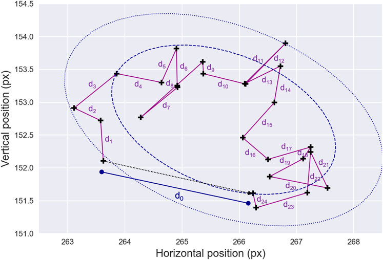 While fixational sequences typically exhibit limited eye mobility, the variability in the micro-movements can provide valuable information related to oculomotor function. Consequently, several additional features—many of which are illustrated in Figure 3 — have been proposed in the literature to better characterize fixational micro-movements.