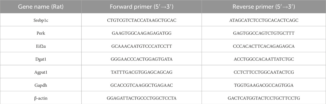 Table 1. Forward and reverse primers (rat) used in qRT-PCR.