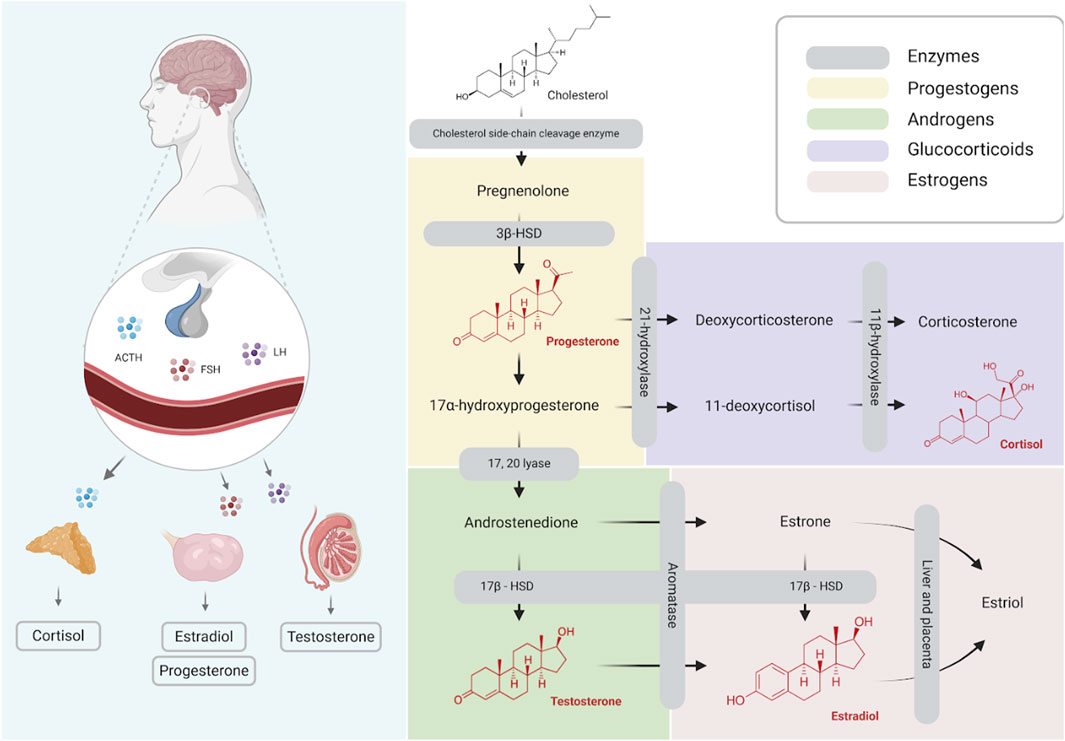 Figure 1. Schematic illustration of steroid hormones synthesis (Created with BioRender.com).