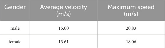 Recovery power is the power at which an athlete can perform work indefinitely based on aerobic metabolism without considering muscle fatigue, provided that P is a certain power value higher than Precover. When P is less than Precover, Precover is a power that a cyclist can maintain for an extended period; that is, pedaling at or below this limit can, theoretically, be continued indefinitely. The average and maximum speeds of elite male and female cyclists are summarized in Table 3.