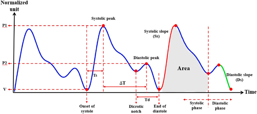 Systolic Time (Ts): Duration from the onset of the pulse to the systolic peak.