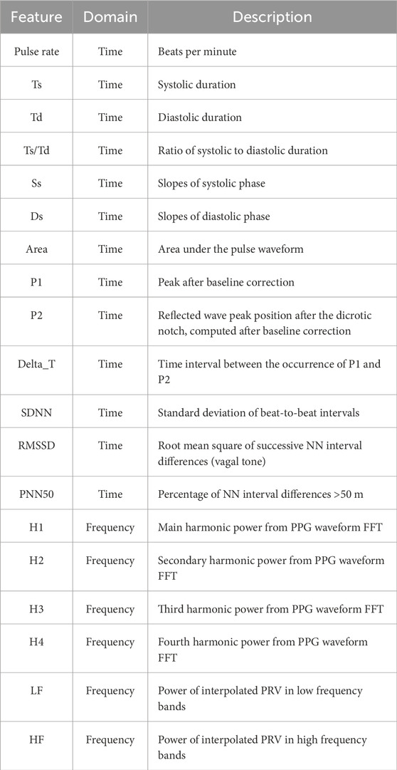 Table 1. Summary of photoplethysmography (PPG)-derived features used in the present study.