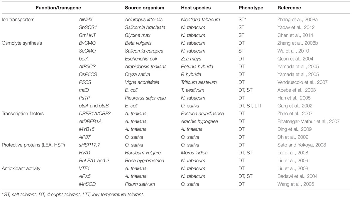 TABLE 1. Some examples of improved stress resistance through genetic transformation.