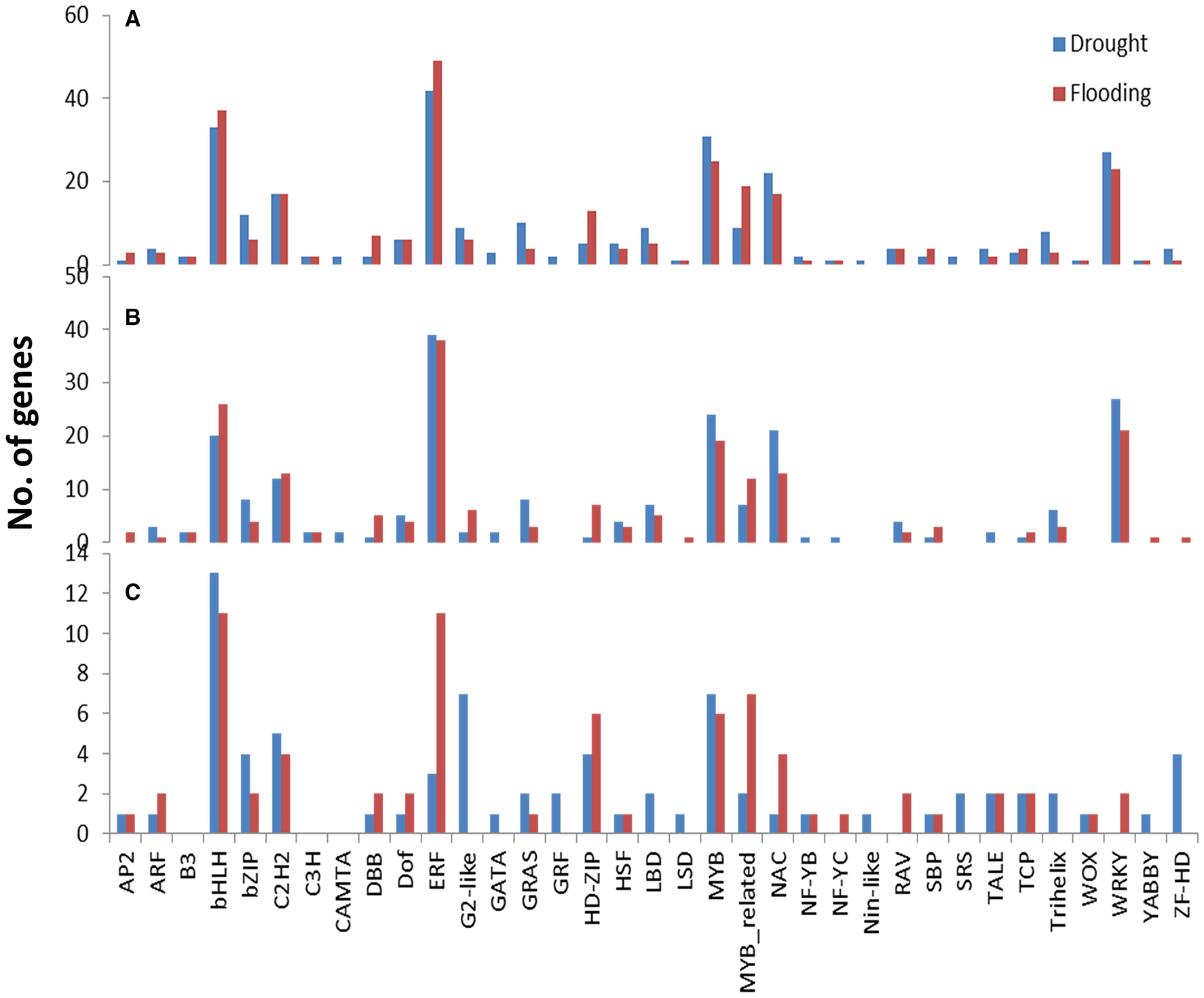 Mapping and differential gene expression analysis under drought and flooding stresses