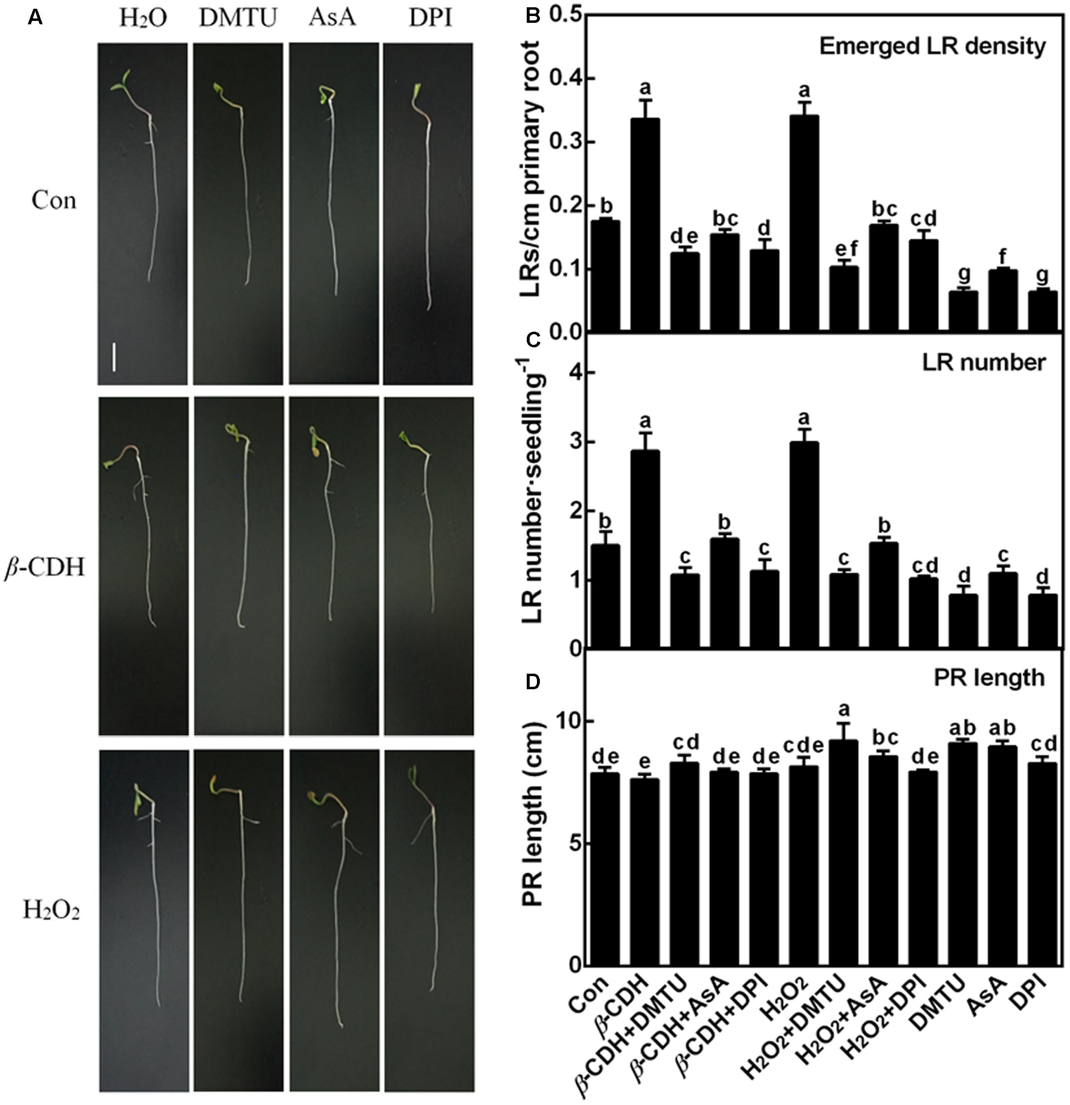 β-CDH- and H2O2-Triggered Lateral Root Primordial (LRP) Are Impaired by DMTU, DPI, and AsA