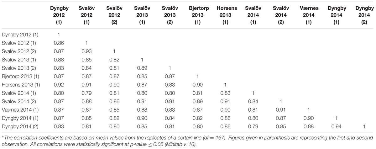 TABLE 1. Spearman’s correlation coefficients∗ of powdery mildew mean scores in the Nordic field trials 2012–2014.