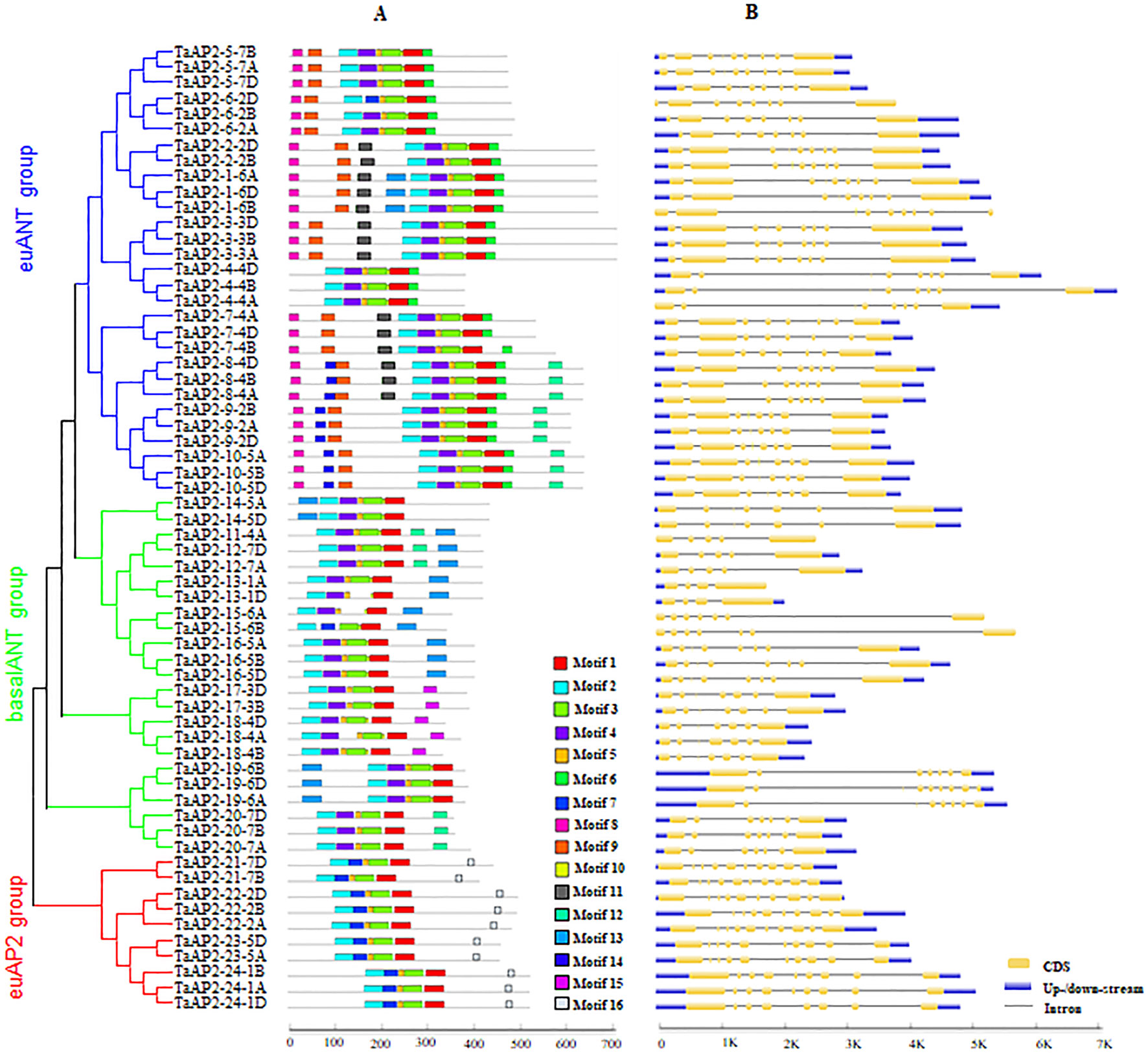 Motif Composition and Gene Structure Analysis of TaAP2 Genes