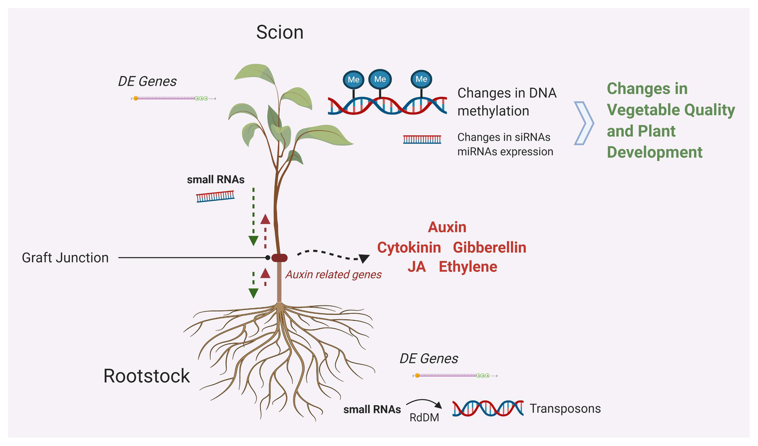 epigenetics (DNA methylation), small RNAs (sRNAs), gene expression, vegetable grafting, rootstock-scion interaction