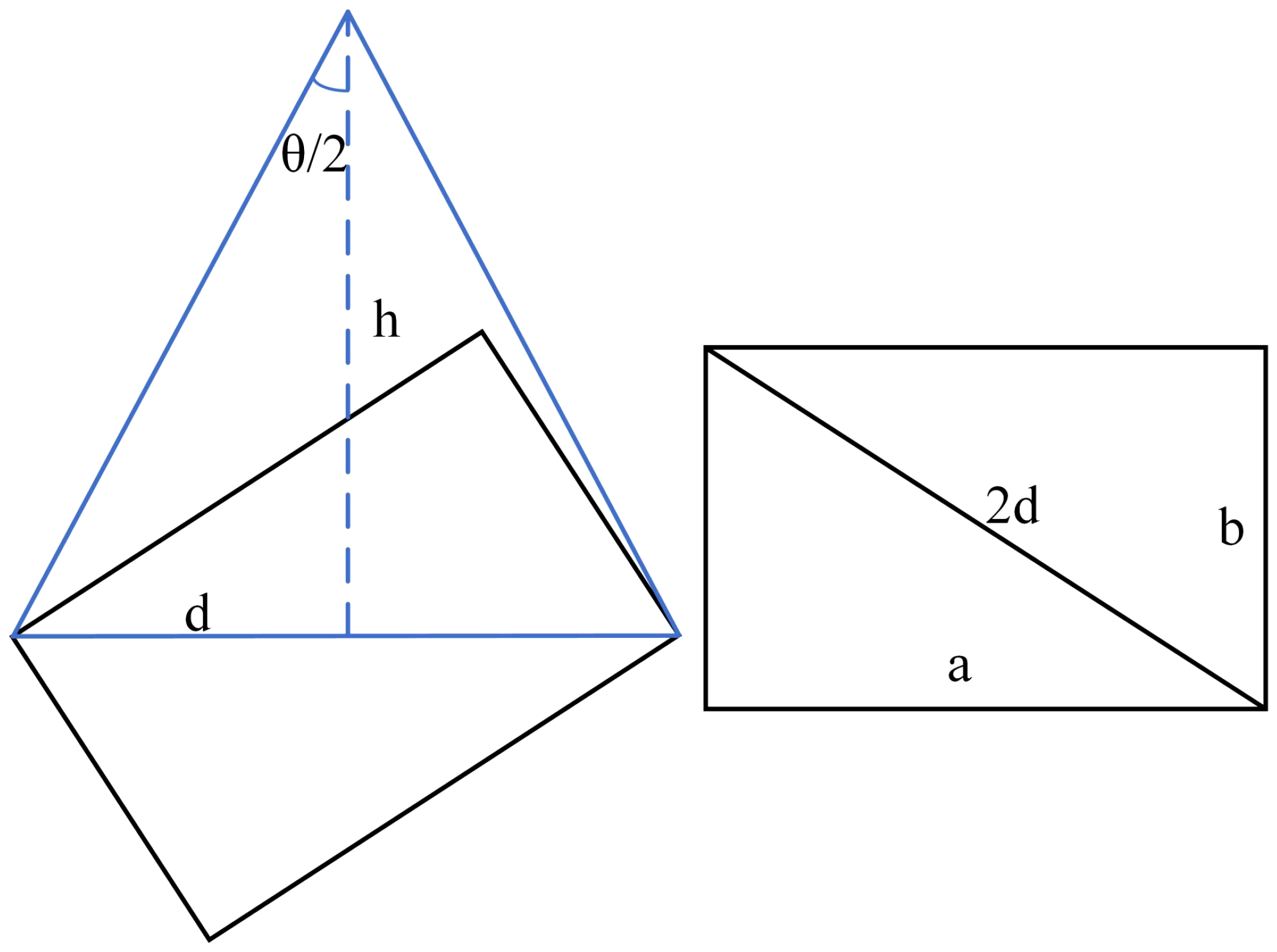 The residual film coverage area S was calculated by the pixel ratio. Let the size of the aerial image be A×B, and the total number of residual film pixels be p. As shown in Figure 7, the aerial photography height is h=5m, and the aerial photography angle is θ=84°. The length of d was calculated to obtain the length of the hypotenuse 2d of the triangle, and the length a and width b of the rectangle were calculated by the Pythagorean theorem. The actual area S1 of the photograph relative to the ground was obtained by multiplying the length by the width (Formula 6). The aspect ratio of the images corresponded to the actual area (Table 1).