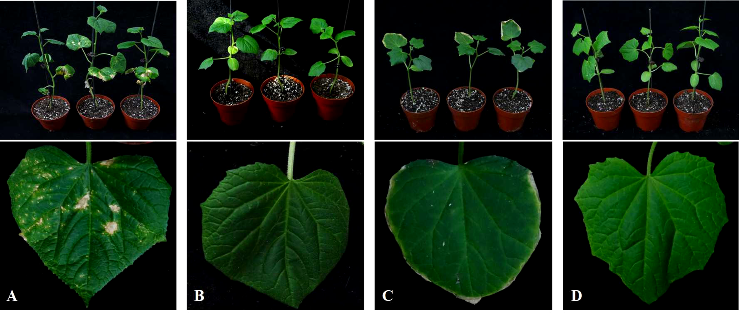 Cucumber is an important vegetable crop in China, and its cultivation area accounts for approximately 60% of the world’s total cucumber cultivation area (FAOSTAT; http://www.fao.org/faostat/en/#home). Greenhouse planting is the main mode of cucumber production in China. Solar greenhouses and plastic greenhouses are the most popular cultivation facilities in China, particularly in northern China. In these greenhouses, cucumber plants are often cropped continuously and are planted once or twice a year (Chai et al., 2020b). This large-scale cultivation produces considerable amounts of vegetable residue, which is rich in nutrients and organic matter. Five main utilization approaches for residue have been proposed by the Ministry of Agriculture, i.e., use as fuel, fertilizer, feed, industrial raw material, and base material. Returning residue into soil can improve soil fertility, reduce chemical fertilizer input (Li et al., 2018; Wei et al., 2021) and directly reduce environmental pollution caused by the illegal activities of residue burning (Jiang et al., 2021). In agricultural production, it is customary to remove the straw of greenhouse crops from the shed. However, falling diseased leaves in the soil are often ignored, leads to high water content and the possibility of carrying detrimental pathogens (Fernández-Gómez et al., 2010). It can provide a suitable environment for the growth, reproduction and accumulation of pathogens, leading to plant diseases (Govaerts et al., 2007; Yuan et al., 2021). Pathogens can survive as resting hyphae in the soil or diseased bodies for at least five years (Chen et al., 2022). Under favorable conditions, the resting hyphae are activated, after which they colonize tissues and kill the young seedlings before or soon after emergence. At present, research on plant infection by soil disease residues mainly focuses on soil-borne diseases. Can leaf diseases become soil disease residues that infect plant leaves again?