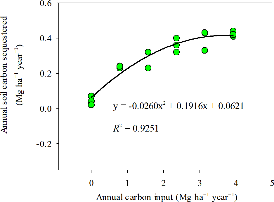 Relationship between annual soil organic carbon sequestration rate and annual carbon input in the wheat-maize rotation system.
