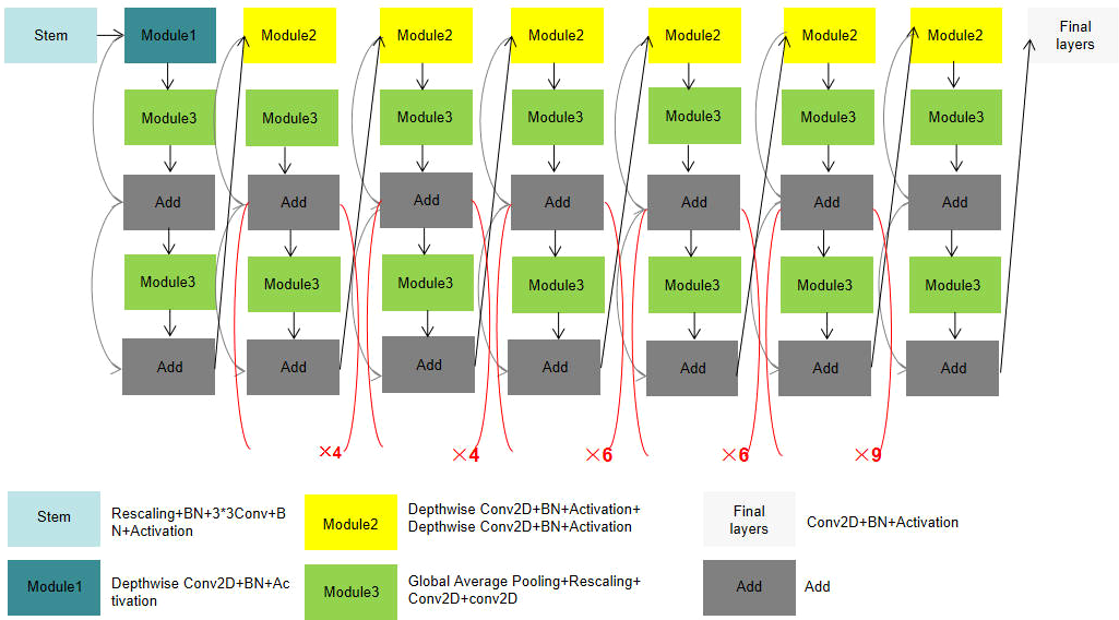 The attention mechanism is a relatively efficient data processing method developed in machine learning in recent years, and is widely used in various types of machine learning tasks such as image recognition and natural language processing. When people observe things outside, they usually focus on what they think is important. The attention mechanism focuses on local information that allows the network to achieve better results. Therefore, in this paper, Convolutional Block Attention Module is added before each regularization of the pre-training network and improves the features of the selected maps to increase the accuracy of the model (shown in Figure 3).