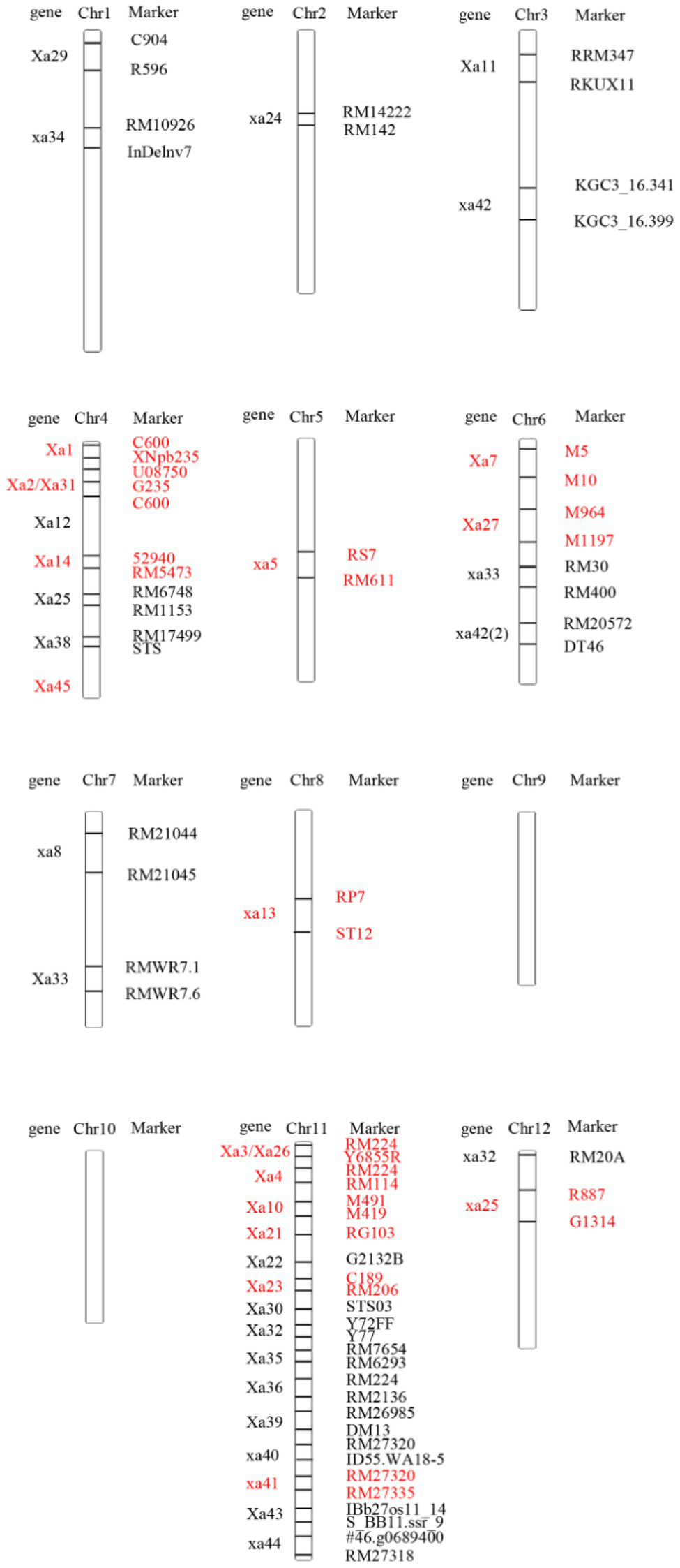 Two resistance genes were located on rice chromosome 12: xa25 and xa32.